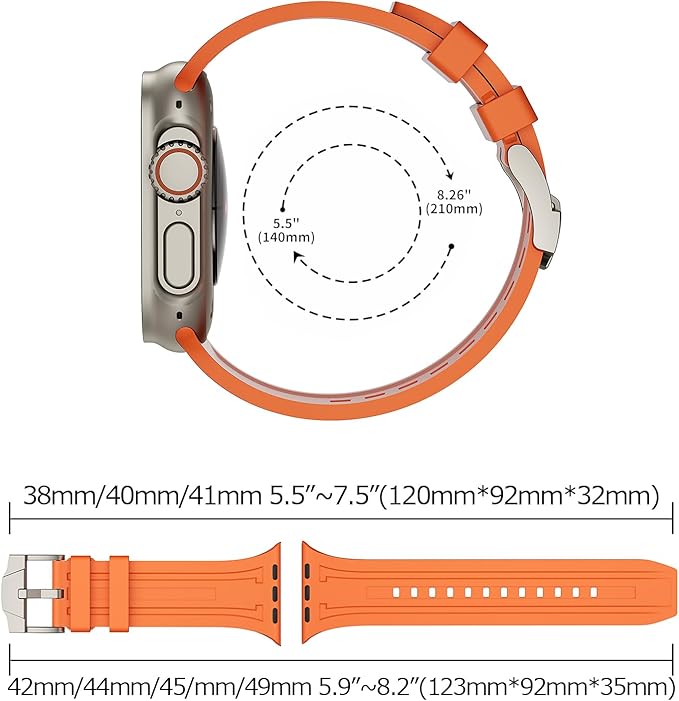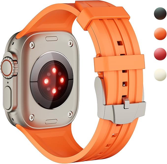 YOFITAR for Apple Watch バンド フッ素ゴム素材 49mm/46mm/45mm/44mm/42mm/41mm/40mm アップルウォッチ ベルト Series Ultra2/Ultra、10/9/8/7/6/SE/SE2/5/4 防水 蒸れない 通気性 汗に強い(49mm/46mm/45mm/44mm、オレンジ) | KAZESHOP