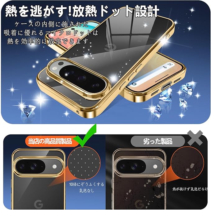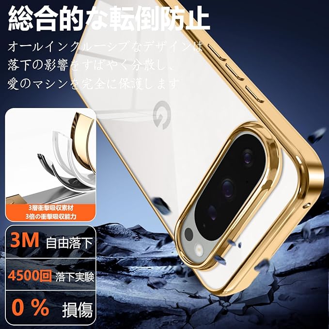 【驚きの透明感・メッキ加工】Google pixel 10/10 Pro用ケースの背面は透き通った高い透明度を誇り、フレームは多層メッキ加工技術によって設計。オシャレで独特の輝きを放ち、シンプルで高級感溢れています。Google pixel 10/10 Proの美しさはそのままに本体を保護しているのです。そして、これはGoogle pixel 10/10 Proの指紋認証を完全にサポートします。