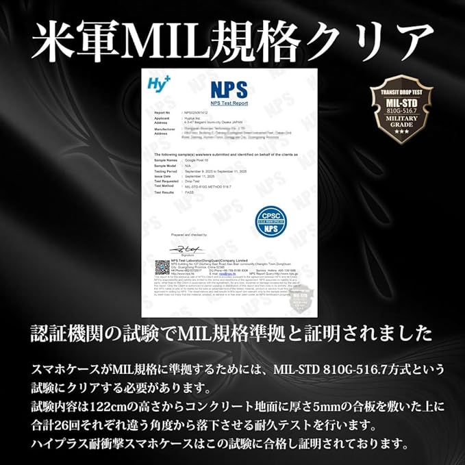 【MIL規格の耐衝撃構造】 四隅に衝撃吸収ポケットを内蔵し、米軍MIL規格(MIL-STD-810G)をクリア。