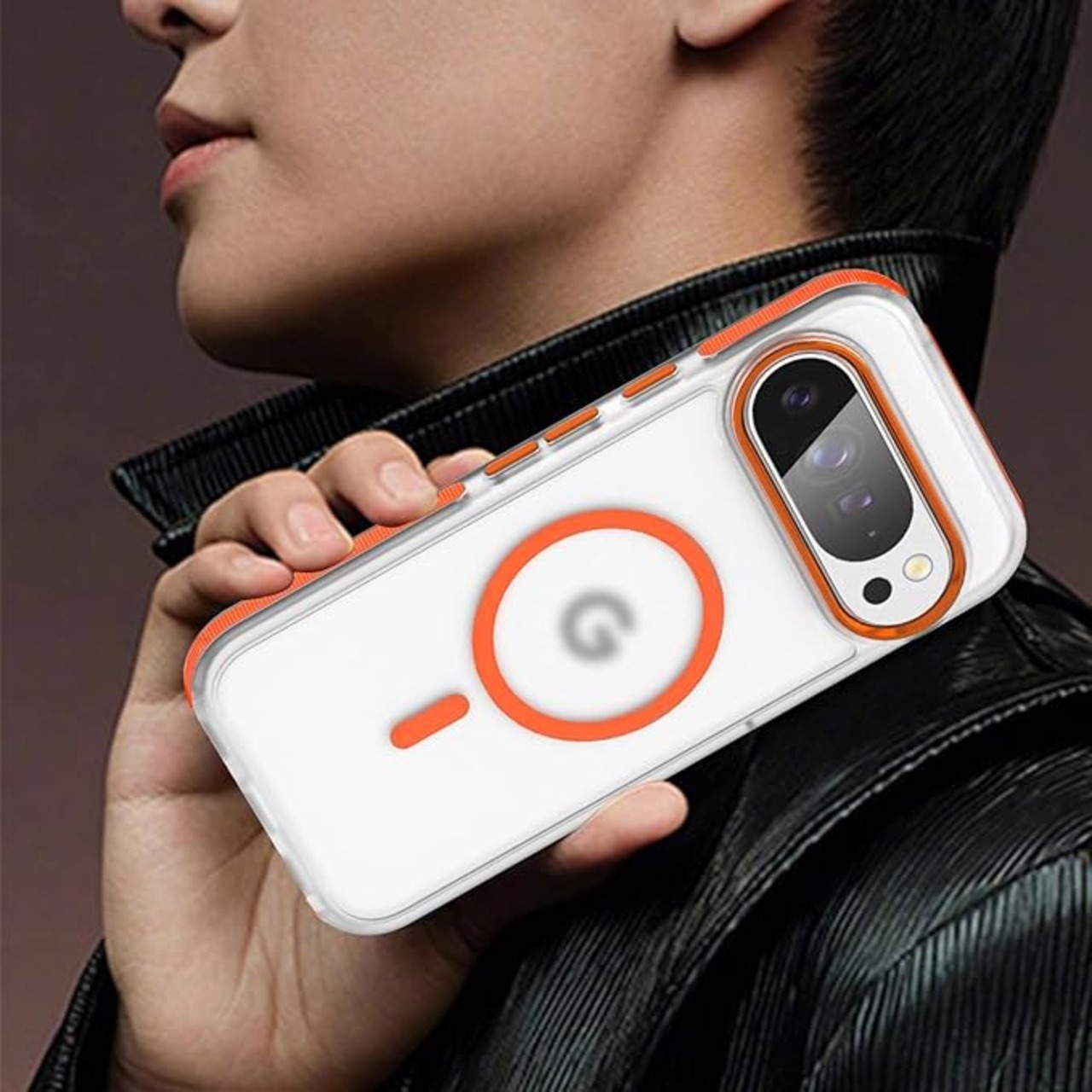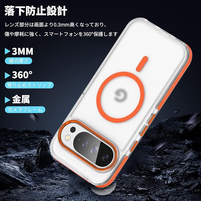 For Google Pixel 10 / 10 Pro ケース MageSafe対応 pixel10 ケース 指紋防止 ピクセル10 プロ スマホケース 滑り止め マット google pixel10 pro 保護ケース TPU素材 グーグルピクセル10pro カバー 耐衝撃 半透明 全面保護 マグネット搭載 レンズ保護オレンジ | KAZESHOP