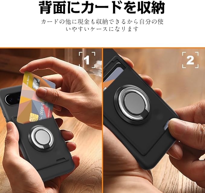 対応 pixel 10 / 10 pro ケース カード収納 リング付き シリコン グーグルピクセル10/10 Pro スマホケース スタンド機能 360 回転リング 耐久 滑り止め 黑 | KAZESHOP