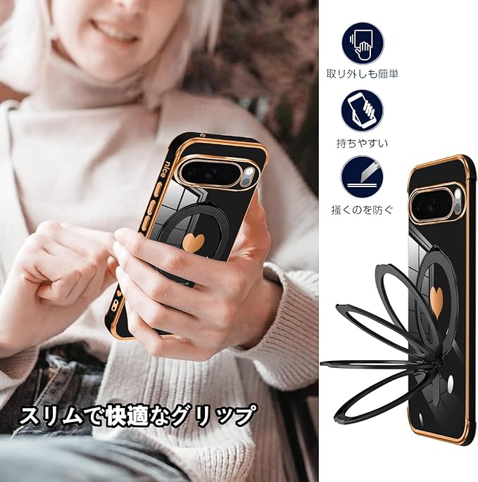 Google Pixel 10 / 10 Pro ケース MagSafe対応 リング スタンド機能 縦横両対応 ワイヤレス充電 レンズ保護 耐衝撃 携帯カバー グーグル ピクセル 10 pro カバー マグネット搭載 車載ホルダー マグセーフ対応 おしゃれ スリムケース ソフト シンプル(ブラック) | KAZESHOP