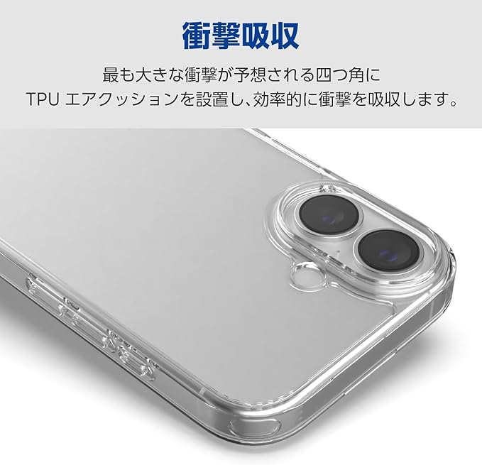 側面には弾力性のあるTPU(熱可塑性ポリウレタン)素材を、背面には強じんで透明度の高いポリカーボネート素材を使用した、スリムなスタイルのハイブリッドケースです。