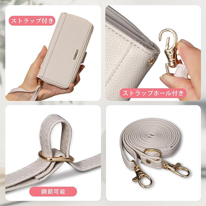 【お揃い長短ストラップ付き&長さを自由調節】ケースには長短2本セットのストラップが配置されており、お客様は好みや場面に応じて長さの異なるストラップを組み合わせることができます。長さを調節可能なショルダーストラップ付きで、肩から掛け・斜め肩掛け・首から掛けが可能で、ショルダーバッグのような感じがおしゃれで可愛いです。スマホのうっかり紛失を防ぐと同時に、両手を解放して楽しみです。短いハンドストラップは、上下2つのストラップ穴を自由に選んで装着でき、指先や手首を通した際に落下を防ぐことができ、片手操作もしやすい設計です。