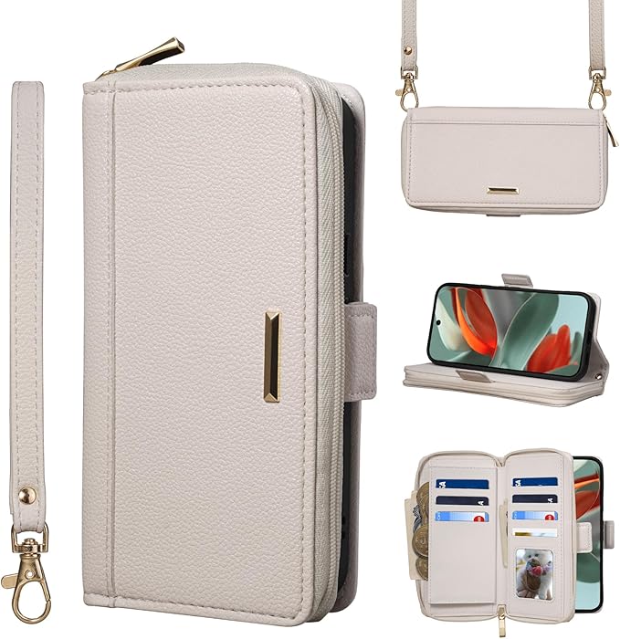 【Rssviss】 Google Pixel 10/ 10 Pro ケース ショルダー Pixel 10/ 10 Pro 手帳型 ケース カード収納 大容量 ストラップ スタンド マグネット ピクセル10 /10 Pro ケース 手帳型 コインケース お財布付き ファスナー 全面保護 P3 6.3inch対応 ベージュ | KAZESHOP