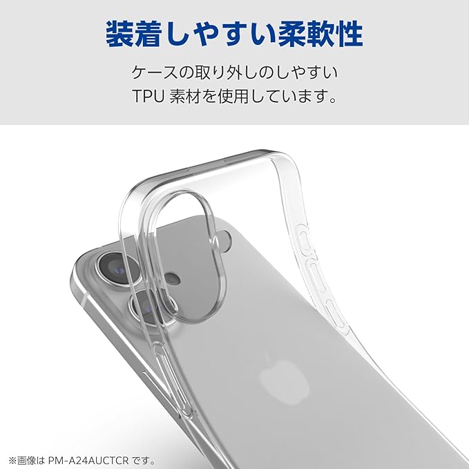 強じんな耐久性としなやかな弾力性をあわせ持つ、TPU(熱可塑性ポリウレタン)素材を使用しています。端末のデザインが美しく際立つソフトケースです。