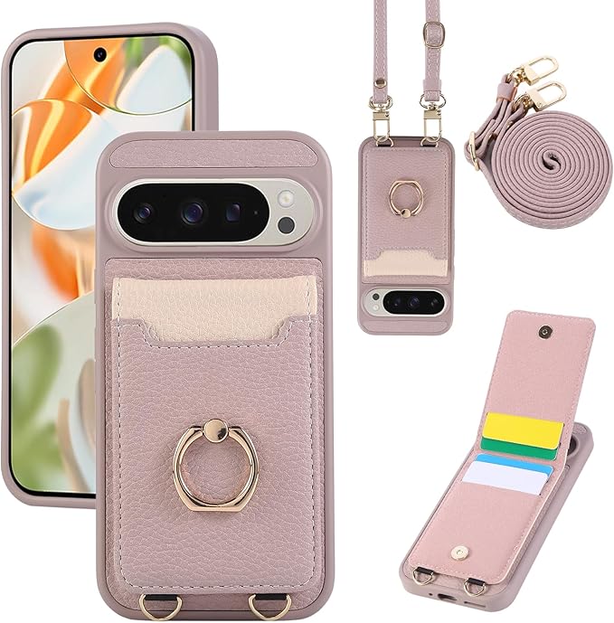 Yuotky for Google Pixel 10 / 10 Pro ケース 手帳型 グーグルピクセル10 ケース ショルダー Googleピクセル10 カバー 背面手帳型 ぐーくるぴくせる10 Pro スマホケース リング付き スタンド機能 カード収納 肩掛け 耐衝撃 携帯ケース (ライトパープル) | KAZESHOP