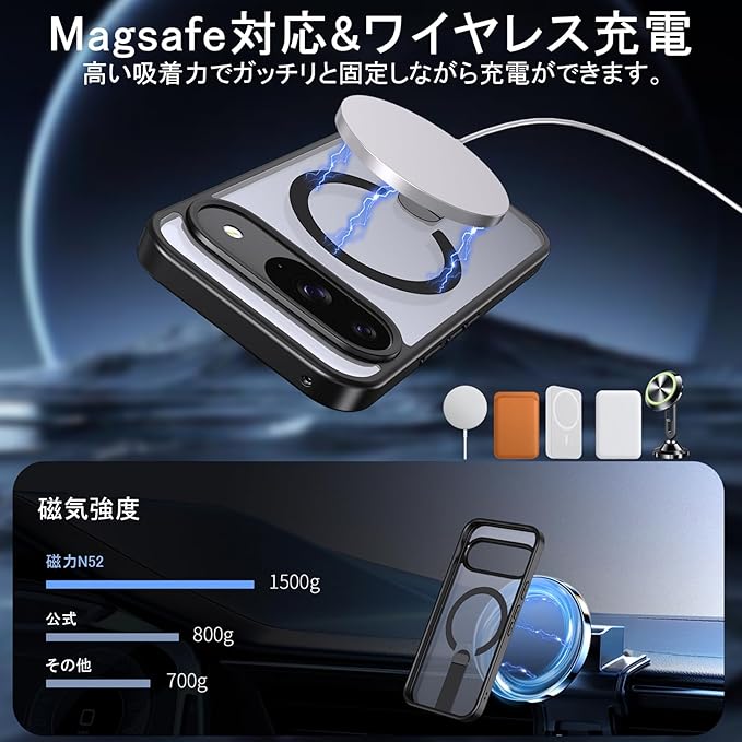 【Magsafe対応&スタンド機能】高い吸着力でガッチリと固定しながら充電ができます。Pixel 10/10 Pro ケースを携帯電話に取り付け、充電器に貼り付けるとすぐに充電できます。また、グーグルピクセル10/10 Proケーススタンド機能を備え。