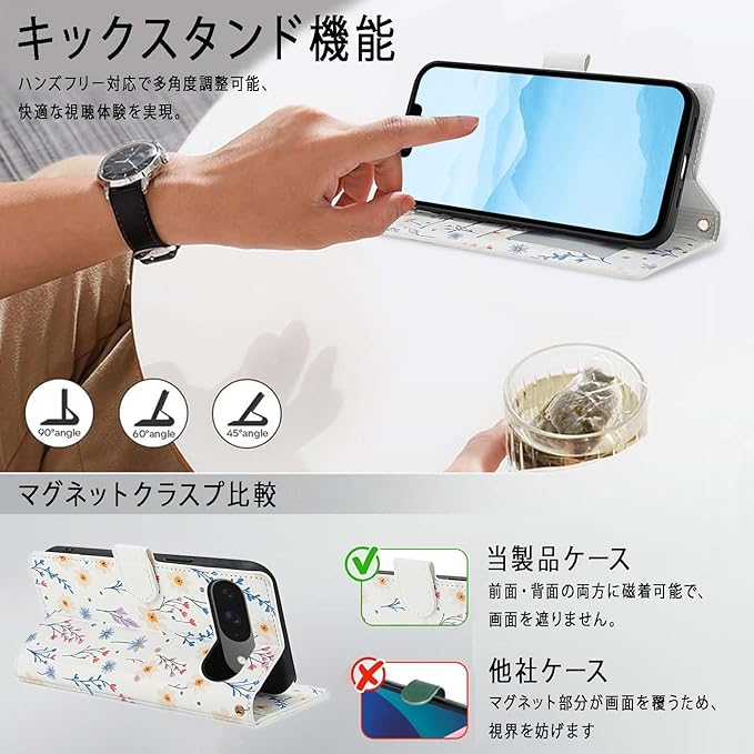 カード収納:ぐーくるぴくせる10 ケース ショルダー の内部には3つのカードスロットと1つの空きポケットがあり、交通系カード、日常的に使う銀行カード、写真なども簡単に収納できます。前面はマグネットボタンでしっかりと閉じられるため、財布としても活用可能です。これにより、スマホだけを持って外出して買い物ができるようになります。さらに、グーグルピクセル10pro ケース 手帳型 は映画鑑賞やビデオ通話の際にスタンドとして折りたたむことができ、お好みの角度で動画視聴や読書などを楽しむことができます