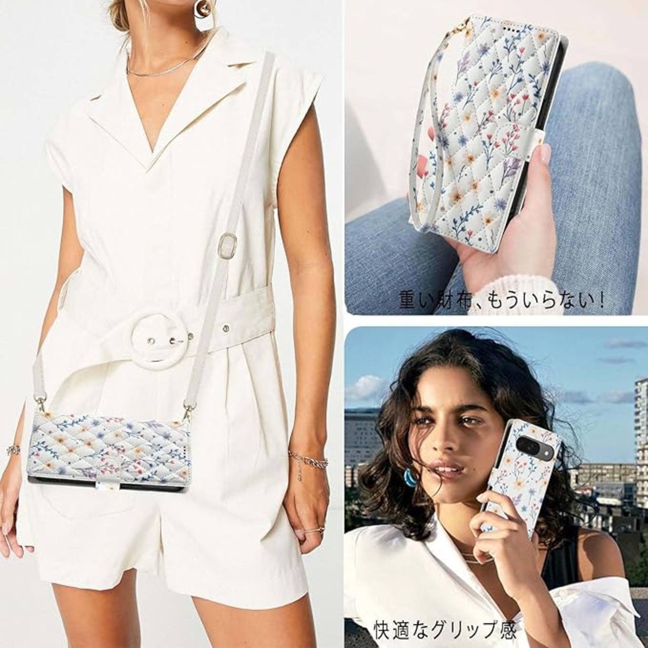 Dahimomo For Google Pixel 10 / 10Pro ケース 手帳型 Pixel 9 / 9Pro ケース ショルダー スマホケース グーグルピクセル10 プロ カード収納 スタンド機能 ピクセル10 財布型 ぐーくるぴくせる10 レザー 花柄 女性 Googleピクセル10プロ カバー 全面保護 おしゃれ pixel10 ケース お洒落 耐衝撃 ひし形柄 - ホワイト(A2) | KAZESHOP