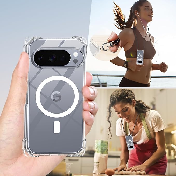 MagSafe対応 Google Pixel 10/10 Pro用 ケースクリア ストラップ ショルダー マグネット搭載 HILEGENERグーグル ピクセル10 プロカバー 縦/横 2WAY肩掛け 斜めかけ純透明 ケース【長さ調整可能 ブラック縄掛け付き】紐付き 斜めがけ 織りスト ネックストラップ ショルダーケース 落下防止 紛失防止(グーグル ピクセル10/10 Pro-クリア) | KAZESHOP