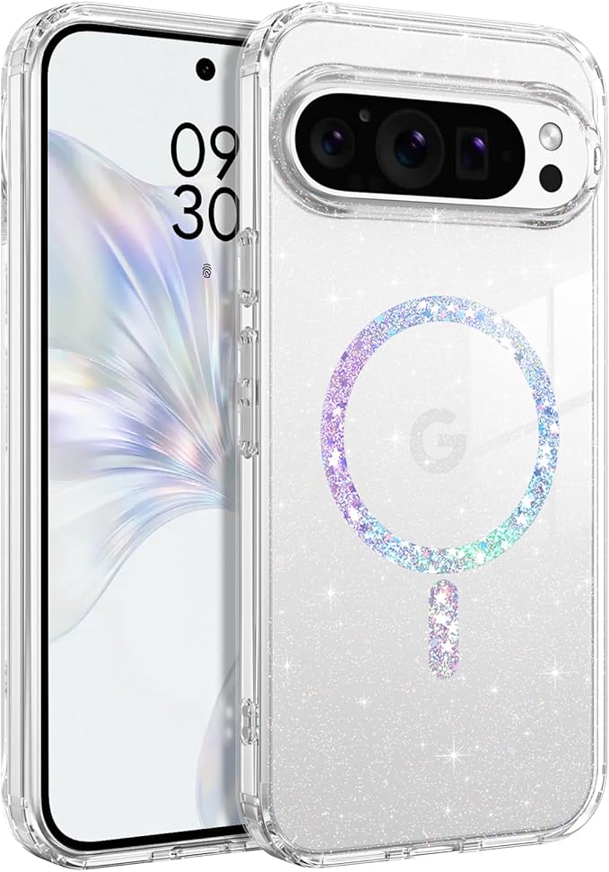 DOMAVER Goole Pixel 10/10 Pro(6.3インチ専用)ケース ワイヤレス充電 ラメフレーク入りケース 女性用 ブリンブリン 衝撃吸収 バンパーカバー 傷防止 レンズ保護 薄型 軽量 グーグルピクセル10/10プロケース クリア