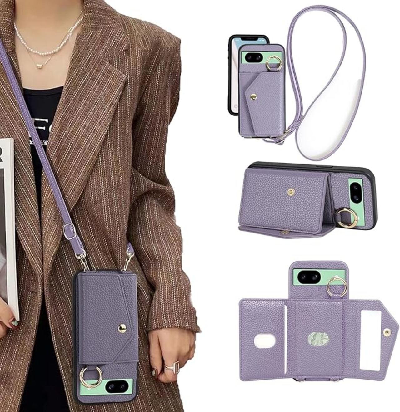 Google Pixel 10 ケース 手帳型 ピクセル10 Pro ケース 手帳型 グーグルピクセル10 財布型 ショルダー 背面カード収納 化粧鏡 スマホケース Googleピクセル10 ピクセル10携帯カバー GooglePixel10ケース スタンド機能 ストラップ 肩掛け 鏡付き - 紫 | KAZESHOP