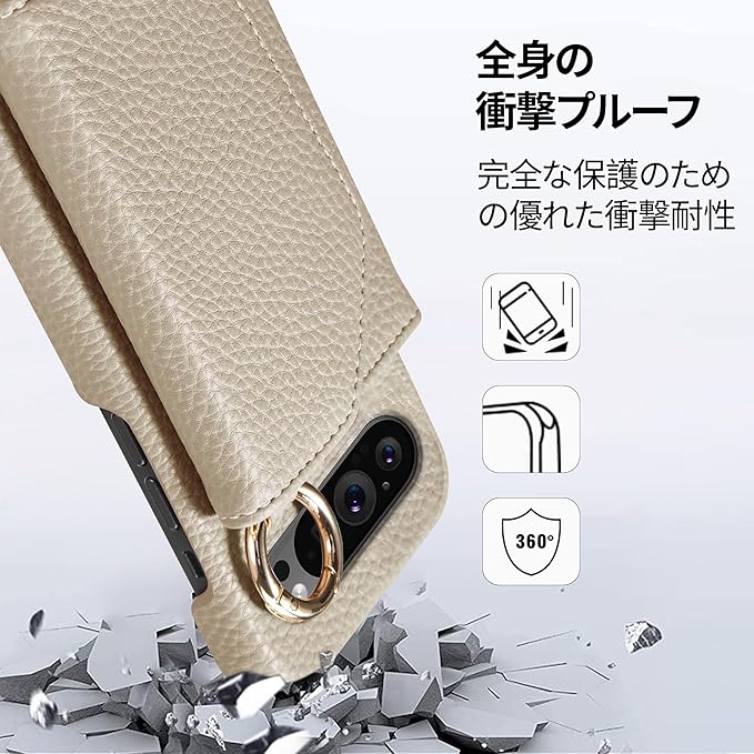 保護ケースデザイン:エッジが衝撃を吸収し、Pixel 10 ケース カード収納 を衝撃から守ります。内側はキャピラリーフリースという柔らかい素材でできており、手触りがよく、スマホの背面に傷がつくのを防ぎます。