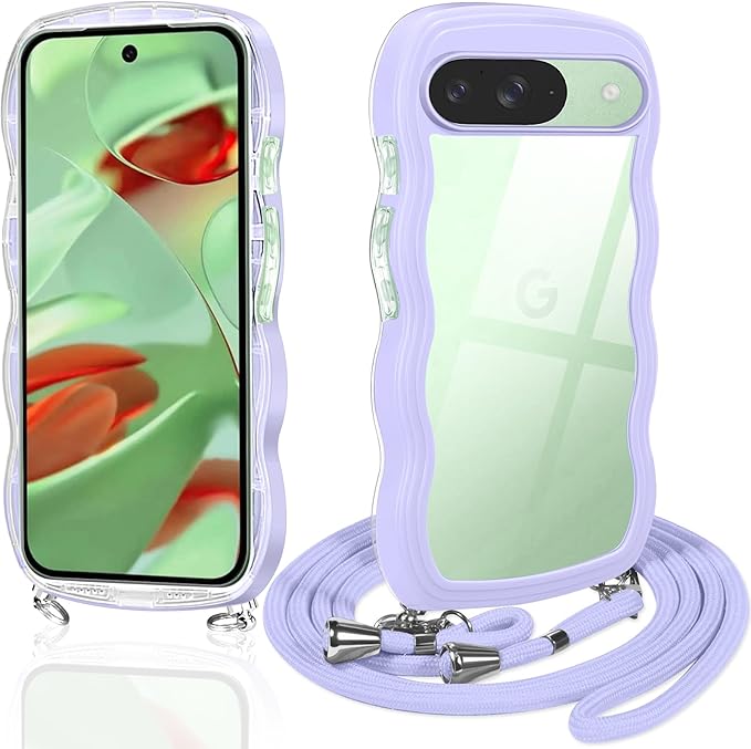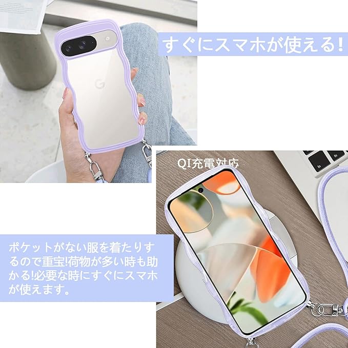 Google Pixel 10/pixel10 Pro ケース ショルダー クリア グーグル ピクセル10/10pro スマホケース 透明 TPU カバー ストラップ付き 肩掛け 首掛け 紐付き 斜めがけ 創意 個性 可愛い かわいい 韓国 耐衝撃(クローブ 紫) | KAZESHOP
