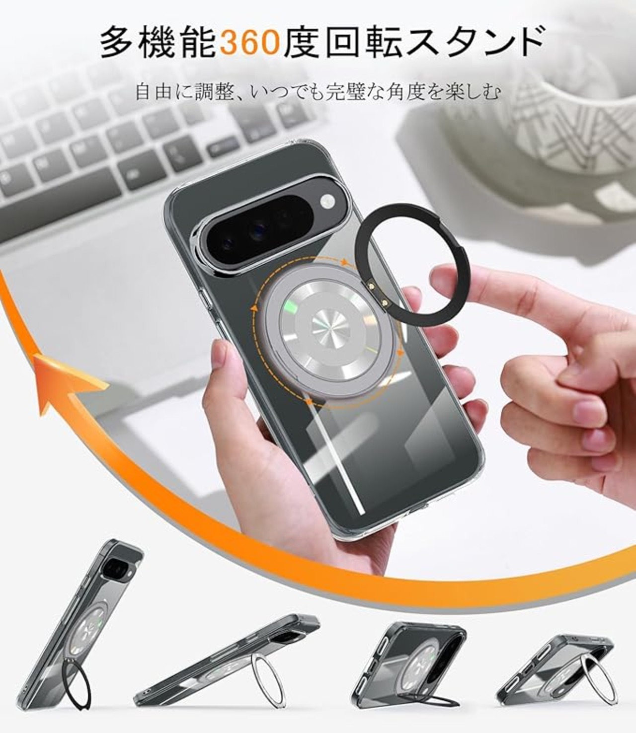 Google Pixel 10 / 10 Pro ケース クリア リング 360 回転スタンド機能 pixel10 / pixel10pro スマホケース 耐衝撃 グーグルピクセル10 / 10Pro カバー 薄型 軽量 透明 TPU 車載ホルダー 対応 (クリア) | KAZESHOP