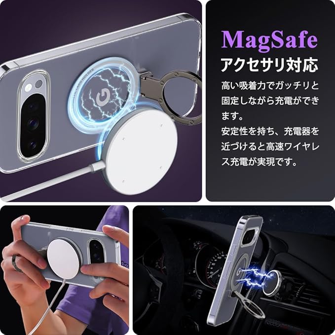 【MagSafe対応】隠しスタンドと強力なマグネットリングの強力な結合により、高い吸着力でガッチリと固定しながら充電ができます。安定性を持ち、充電器を近づけると高速ワイヤレス充電が実現です。