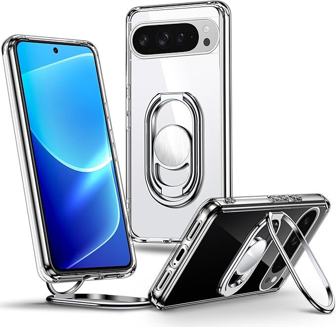 Rockaway Google Pixel 10/10 Pro 用 ケース SC-54F SCG34 スマホリング スマホグリップ 角度調節可能 折り畳み 耐衝撃 スタンド機能 軽量 落下防止 スマホケース グーグル ピクセル10/10Pro 用カバー - クリア | KAZESHOP