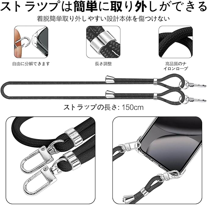 Google Pixel 10 Pro XL ケース クリア ショルダー スマホケース ピクセル 10 プロ XL カバー 肩掛け 縄掛け 透明 TPU 薄型 耐衝撃 携帯ケース 紐付き 斜めがけ ストラップ着脱可 縦/横 長さ調整可能 取り外し可能 落下防止 紛失防止 かわいい おしゃれ (クリア) | KAZESHOP