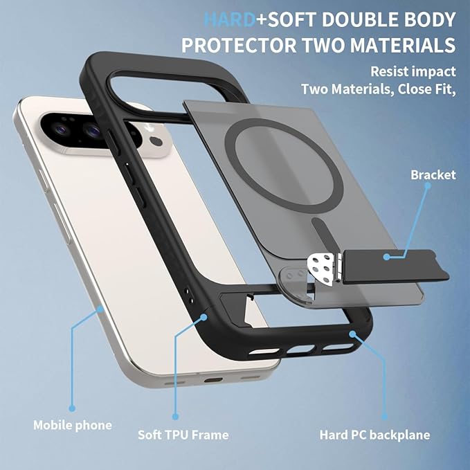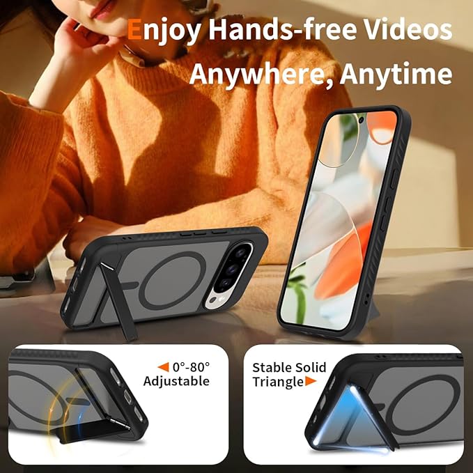 Google Pixel 9 / 10 用 ケース Pixel 9 Pro / 10 Pro 用 ケース スタンド付き マグネット搭載 ピクセル10 スマホケース 半クリア 隠しスタンド マット感 横/縦置き TPU ワイヤレス充電 Pixel10Pro カバー 半透明ブラック | KAZESHOP