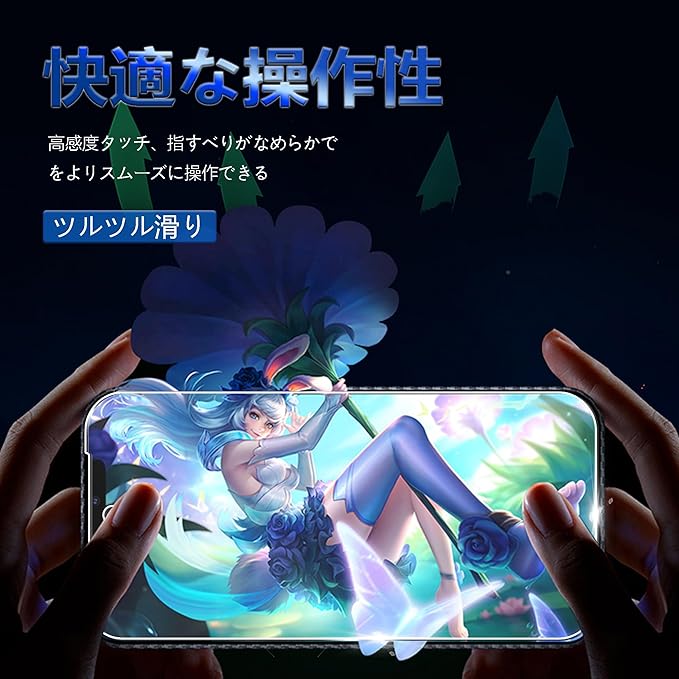 【指紋防止&超スムーズ操作 - ナノ撥油コーティング】:特殊疎油加工で汗・油・化粧品などの付着を防止、サッと拭くだけで清潔を維持.タッチ感度を損なわず、指紋認証や画面操作もストレスフリー、ゲーム操作やスクロールが驚くほど滑らかに