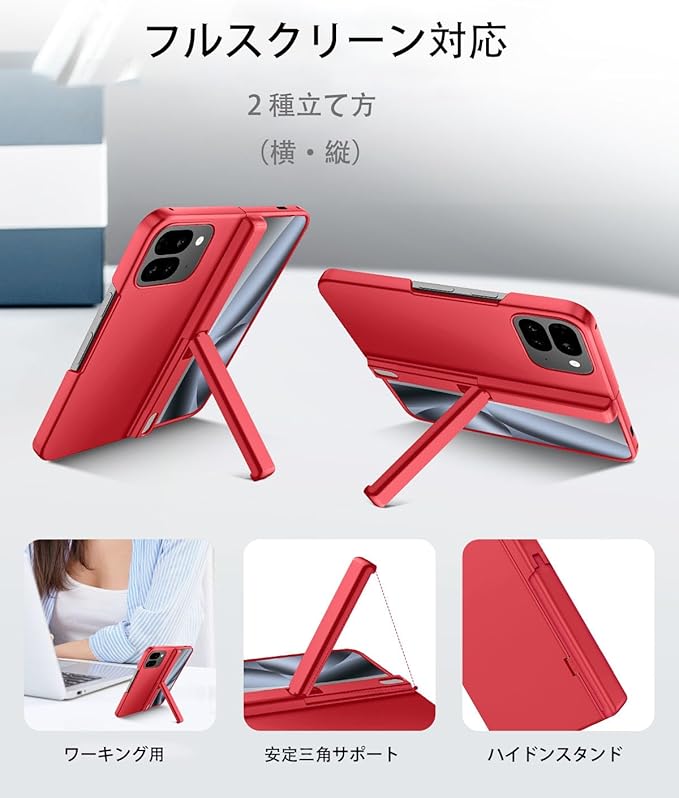 Miimall 対応 Google Pixel 10 Fold フィルム一体型ケース スタンド機能 ヒンジ保護 耐衝撃 防塵 女性向け 耐久性 全面保護 滑り止め 薄型 スマホケース ピクセル 10 プロ フォールド カバー Z Fold 7 Case(赤) | KAZESHOP