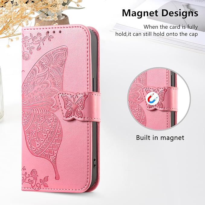 Google Pixel 10 / 10 Pro 用の ケース 手帳型 グーグルピクセル10/10 プロ 用の 携帯 背面 スマホカバー 財布型 蝶柄 衝撃吸収 360度保護 女性向け PUレザー マグネット スタンド機能付き カード収納 軽量 純色 バタフライ エンボス加工 女性 可愛い花柄 着脱しやすい ピンク PIX10-DIE | KAZESHOP