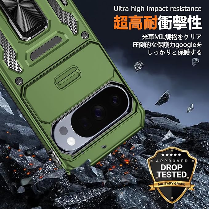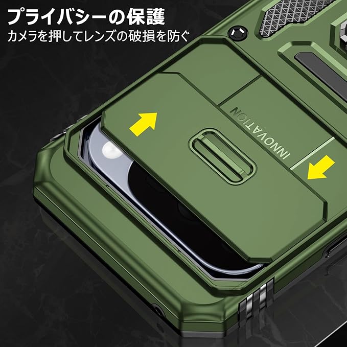 PNEWQNE Google Pixel 10 Pro XL 用ケース リング付き 衝撃吸収 耐衝撃 スタンド機能 米軍MIL規格 グーグル ピクセル10 pro xl 用ケース 全面保護 360 回転 滑り落ちにくい 人気 おしゃれ 携帯カバー 緑 WY100-25 | KAZESHOP