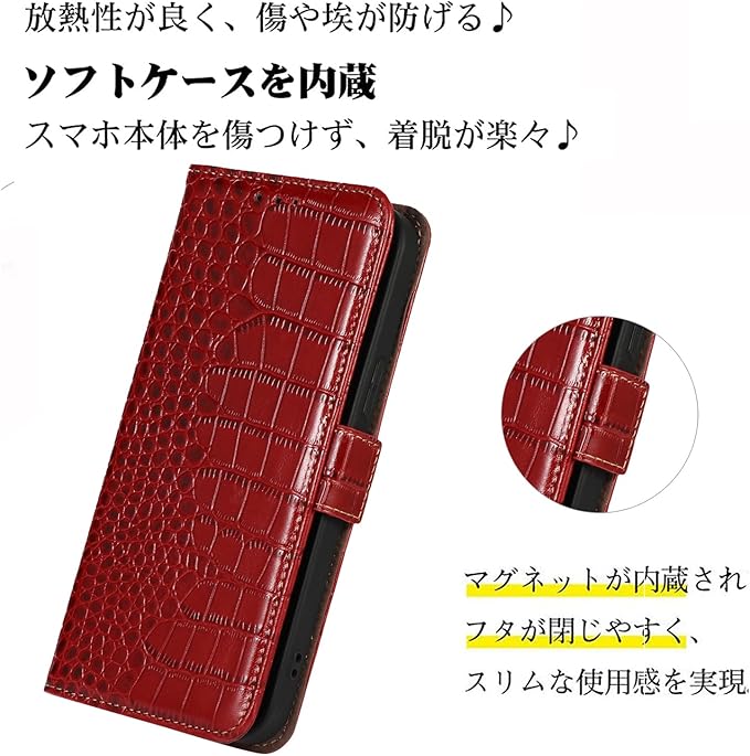 for Google Pixel 9/9 Pro ケース 手帳型 本革 ワニ柄 グーグル ピクセル10 /10プロ 牛革 財布型 鰐柄 クロコダイル柄 耐衝撃 [RFIDブロッキング] カード収納 マグネット式ボタン 横置きスタンド機能 便利 財布型携帯 スマホケース レッド Rureuu | KAZESHOP