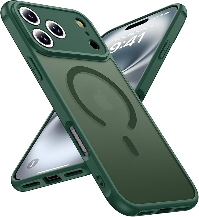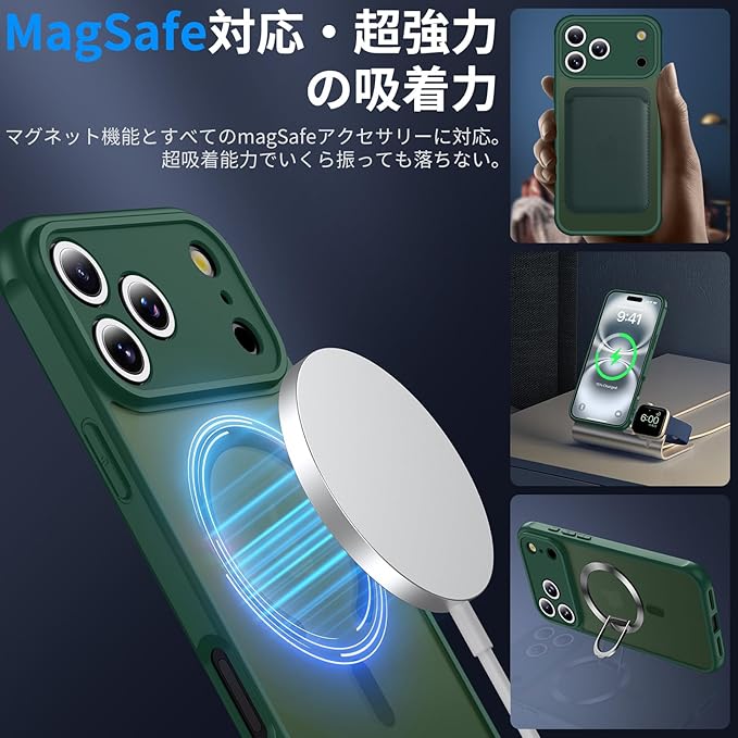 【MagSafe対応・米軍規格】Holidi iPhone17Proケース MagSafe マット感 マグネット搭載 米軍MIL規格 全面保護 ワイヤレス充電 黄変なし 二重構造 アイフォン17pro ケース Magsimpl-Series 半透明・グリーン | KAZESHOP