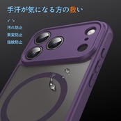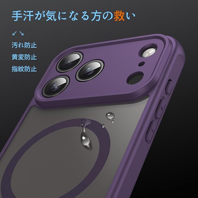 Panda Baby iPhone 17 Pro 用 ケース MagSafe対応 半透明 マット質感 指紋防止 薄型 耐衝撃バンパー マグネット搭載 レンズ全面保護 (パープル) | KAZESHOP