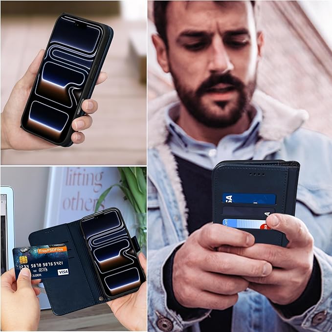 「手帳型ならではの機能が満載」:内側には三つのカード入れと一つのフリーポケットがつき、定期券やカードの収納に優れているアイフォン17 Pro 手帳型ケースです。横置きスタンド機能がつき、暇つぶしに楽々動画視聴や読書など楽しめます。