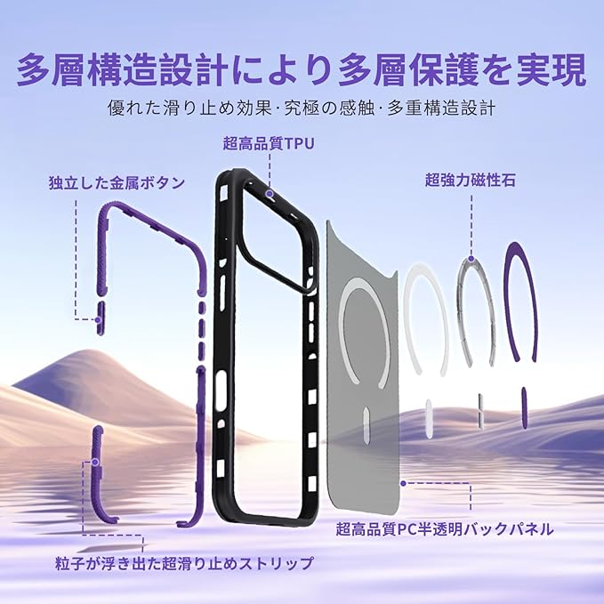 【MagSafe 対応】ハイパワーマグネット内蔵したこのケースは、通常のケースより 2 倍強力な磁力を発揮します。ケースを外すことなく、MagSafe 充電器と自動的に位置合わせし、本来の充電速度を体験できます。また、すべての MagSafe アクセサリと互換性があります。