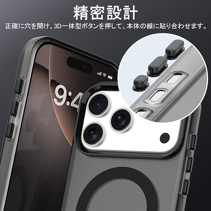 磁気吸着:iPhone 17 Proケースの背面板にはマグネットが内蔵されており、強力な吸着機能を持っており、多種なマグネットアクセサリーとの素晴らしい組み合わせを実現でき。ケースを装着した状態でもアイフォン 17 Proンの急速ワイヤレス充電が可能です。