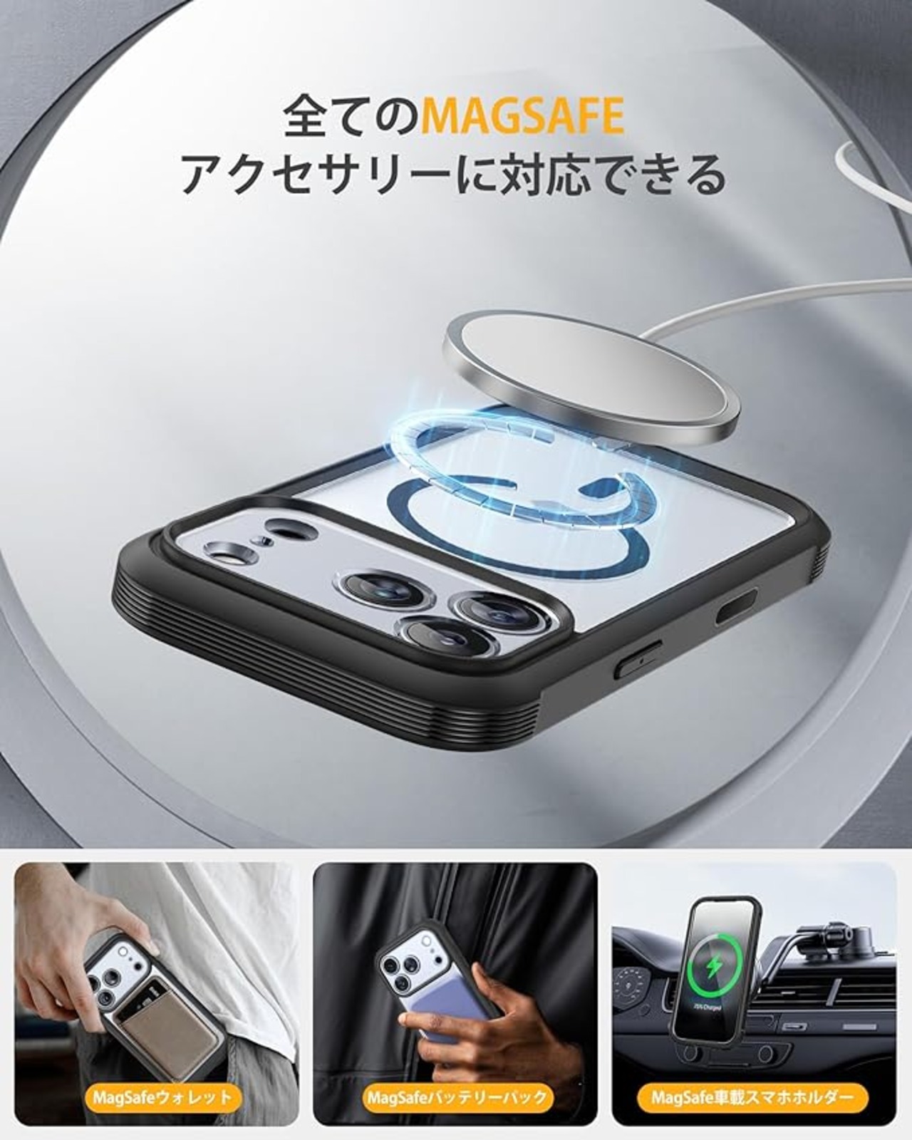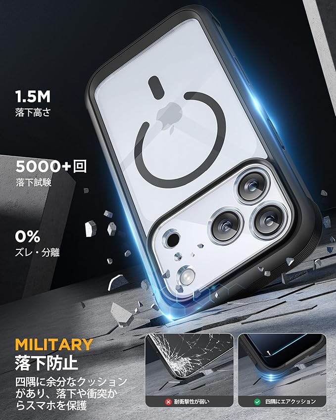 【強力な磁力吸着】2025アップグレード、iPhone17pro 用 Magsafe対応ケース。マグネットを搭載、超強力な吸着力でしっかり吸着します。利便性と実用性をアップさせ、ワイヤレス充電はもちろん、多様なマグネットアクセサリーとの素晴らしい組み合わせも実現できます。