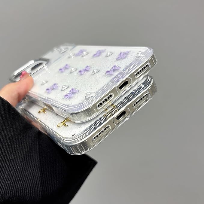 QLTYPRI iPhone 17 Pro 用 ケース クリア パープル ミニリボン おしゃれ 韓国 iphone17pro 用 ケース 透明 可愛い 耐衝撃 スマホケース 立体 りぼん装飾 きらきら アイフォン17 Pro カバー 対応、パープル | KAZESHOP