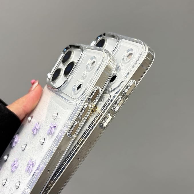 【3D ミニリボン デザイン 】背面はシルバーの小さなリボンと、埋め込まれている目を引くグリッターが剥がれ落ちたりしなく、可愛い、流行りの韓国デザインです!カメラ周りのシルバーフレームは、取り外し可能なデザインとなっております、お好みに合わせて、シルバーフレームの有無ご利用くださいませ。