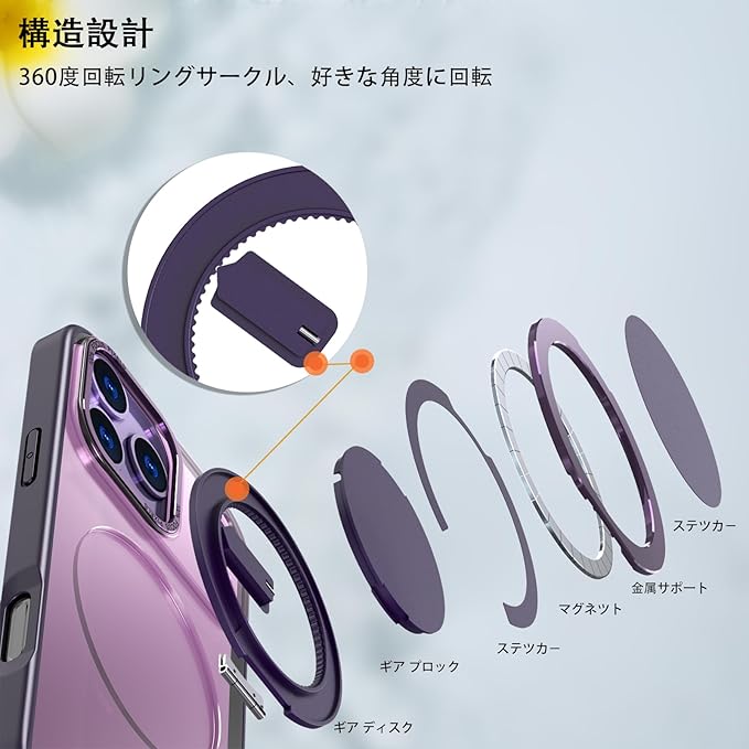 【捻れば最適な角度】精密な機械工学により、捻るたびに機械式腕時計の巻き上げのようなカチッとした音と感触を生む。角度安定。仕事中は情報確認やビデオ会議、通勤時の情報チェック可。リングとしても使用可。"プライベート"は息抜きではなく、視野を変える時。映像やゲーム、写真やSNSチェック、家族との連絡など、多彩なシーンで活躍!(iphone 17 pro ケース)