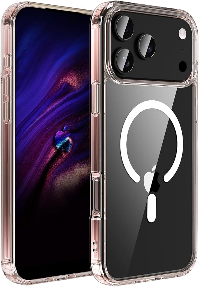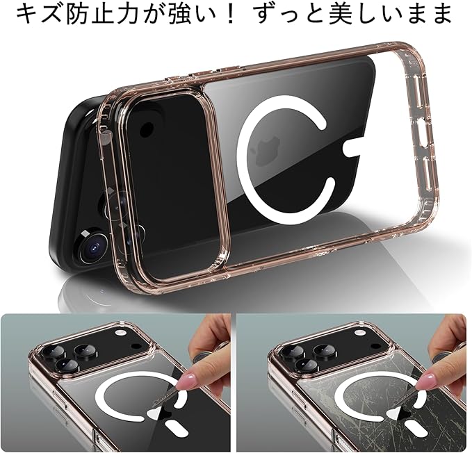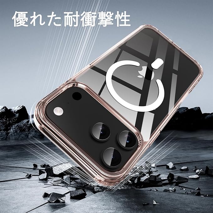 iPhone 17 Pro ケース クリア 耐衝撃 MagSafe対応 マグネット搭載 PC 傷防止 滑り止め 軽量 薄型 米軍MIL規格 ワイヤレス充電対応 スマホカバー EUMADOVE (ピンクの傷防止, iPhone 17 Pro) | KAZESHOP