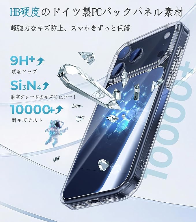 【iphone17プロ ケース黄ばみ防止技術】ドイツ開発のPC素材を採用。さらに、耐油・耐UVナノコートと「StainGuard」防汚コートを表面に施すことで、汗、皮脂、紫外線による黄ばみを強力に抑制します。その効果は一般的なあいふおん17 pro ケースの約4倍。日光曝晒や液体への耐性が実証されており、長期間にわたり美しい透明感を維持。指紋がつきにくく、あらゆるシーンでクリアな見た目と上品な印象を叶えます。