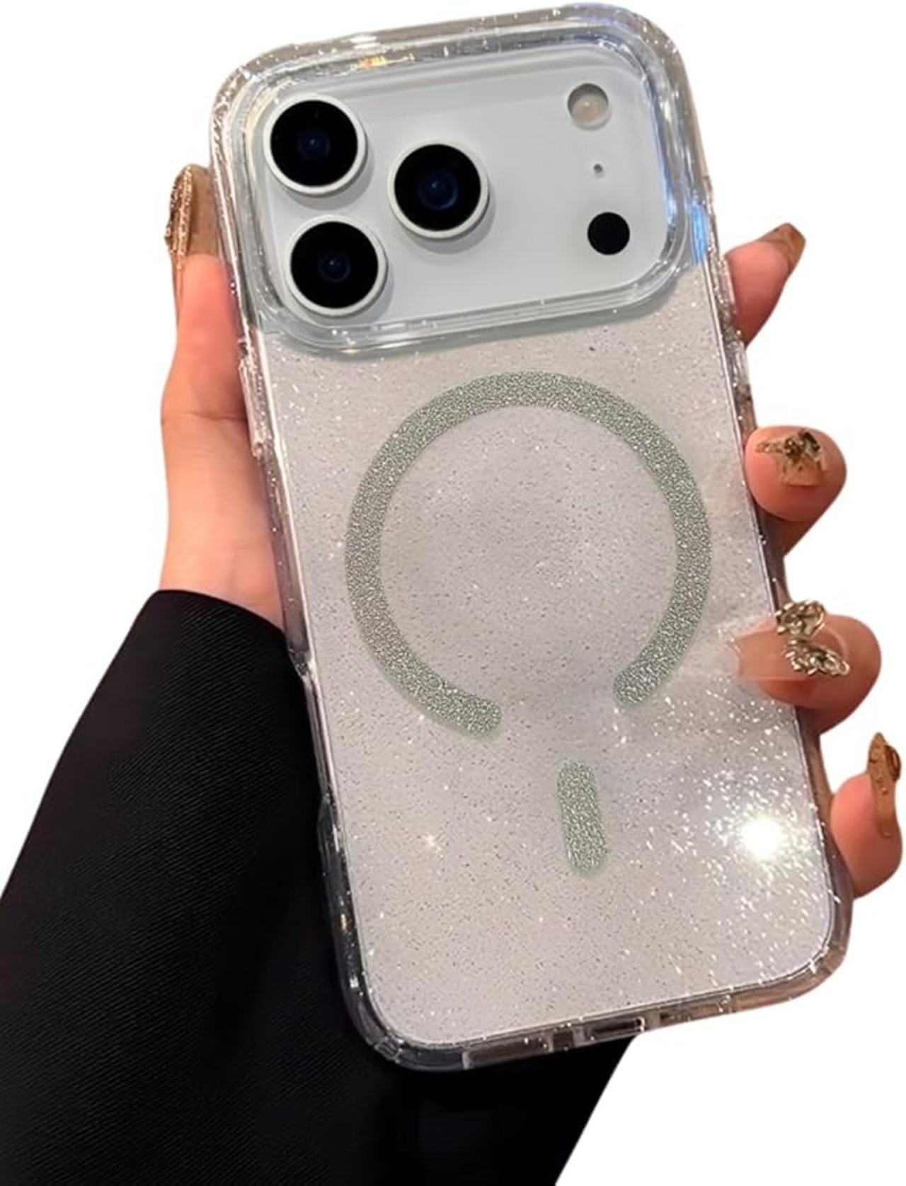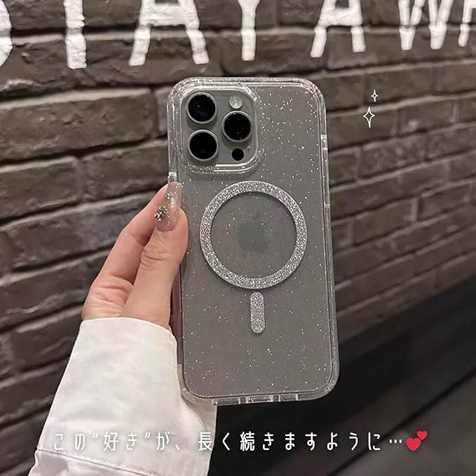 【可愛い顔して守備力高め】saymi's きらきら ラメ 韓国 iPhone17pro ケース MagSafe対応 クリア 上品シルバー パウダーラメ 美人映え ハードタイプ (iPhone17pro) | KAZESHOP