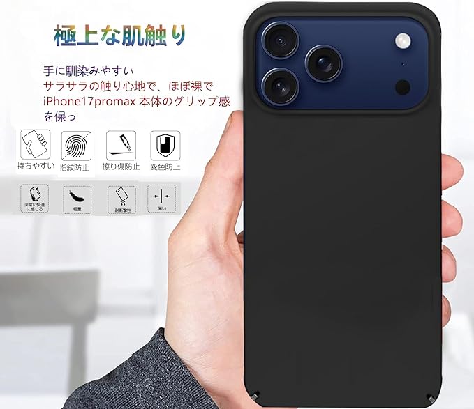 【質感の極み】アイフォン17promax用 ケース。超薄型設計で、片手操作も楽々可能。カバーを付けたままでもスムーズな操作ができ、手にかかるストレスを軽減!さらに、ドイツ製の優れた油性塗料で仕上げられたケースは、触れるたびに心地よいベルベットのような感触が手から離れなくなることでしょう!