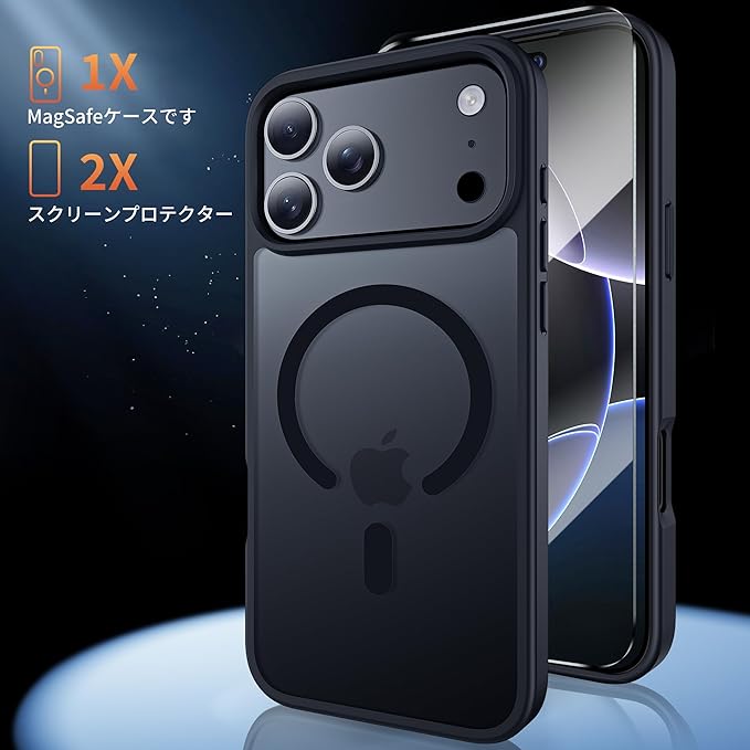 Bruzaio iPhone 17 Pro 用 ケース【強化フィルム2枚付き】Magsafe対応・米軍規格 いphone17Pro スマホケース 半透明 耐衝撃 指紋防止 滑り止め マグネット搭載 ワイヤレス充電 耐久性 黄ば 全面保護 あいふおん17Proケース 6.3インチ用,ブラック | KAZESHOP