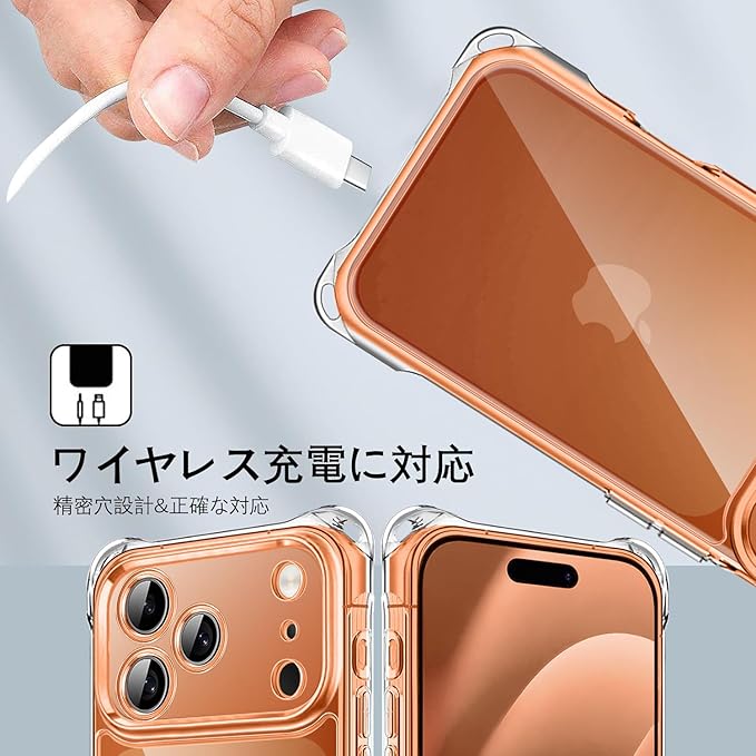 【高耐衝撃性・レンズと液晶を保護】カメラレンズの周りに段差をつけて擦り傷を防ぎます、平らな場所においても、液晶画面とカメラレンズに直接触れることがなく、ケース四隅のエアクッションデザインにより、ケースの四角を強化し、本体が落ちる場合に伝わる衝撃を吸収し、落下時の衝撃を最小限に抑えます、iPhoneを全方位からしっかり守れます。