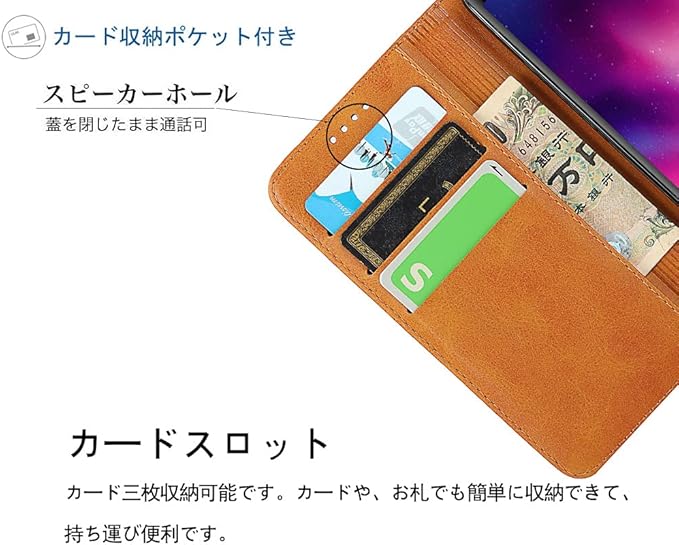 【高質PU皮革+TPU】レザーケースは、レトロの表面(高品質のPUレザー)+優しい裏面(柔軟なTPUカバー)と組み合わせ、衝撃吸収機能あり、プレミアムトップグレイン本革製の精密で、質感、強さ、キャラクターなどが厳選されています。