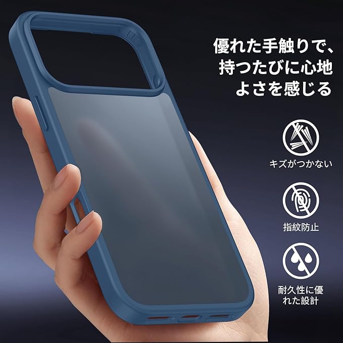 Aunote いphone17pro ケース マット半透明 米軍MIL規格 耐衝撃 耐久性 ワイヤレス充電 黄ばみなし 指紋防止 軽量 スマホケース iPhone17pro ケース カバー ブルー | KAZESHOP