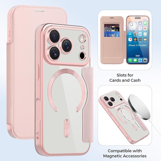 Kanyaku iPhone17Pro用のケース MagSafe対応 レンズ保護 ケース 手帳型 用 カバー 高級8P PUレザー ス マホケース スタンド機能 優しくて快適 カード収納付き 耐衝撃 ワイヤレス充電対応 薄型 軽量 スマホケース (JDPT-17pro-fen) | KAZESHOP
