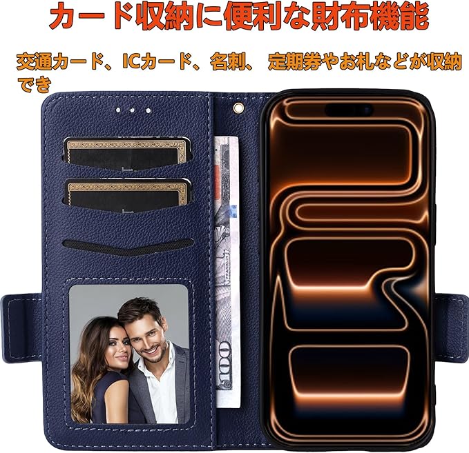 【カードポケット付き】:財布型ケースとして、名刺やお札などを入れるカードポケットがつき、ちょっとしたお出かけにもスマホケース一つでOK!日常生活に便利です。ただし、カードを入れ過ぎると、閉まらない場合がありますので、ご遠慮ください。iPhone17pro max用