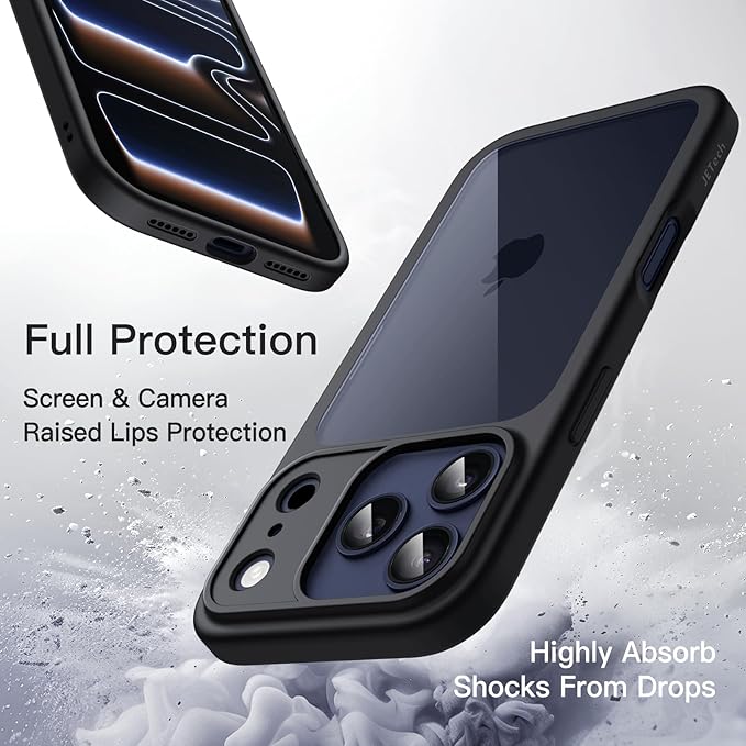 JETech iPhone 17 Pro Max 6.9インチ用 ケース 耐衝撃スマホバンパーカバー ソリッドカラー マットTPUフレーム 傷つけ防止 クリアバック (ブラック)
