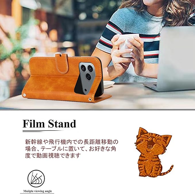 iPhone17Pro ケース 手帳型 iPhone17 Pro カバー あいふぉん手帳型 アイフォン 携帯ケース iPhonecase スマホケース スマホカバー 携帯カバー ストラップ付き カード収納 財布型 ベルトマグネット スタンド機能 かわいい 猫 耐衝撃 全面保護 (iPhone 17 Pro 対応) ライトブラウン | KAZESHOP